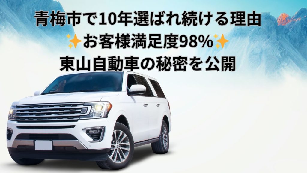 青梅市の中古車販売店選び|失敗しない販売店の見つけ方 青梅市の中古車販売店選び完全ガイド 失敗しない中古車販売店の見つけ方と選び方 青梅市で中古車購入をお考えですか?中古車は人生の中でも大きな買い物の一つです。だからこそ、信頼できる販売店選... -